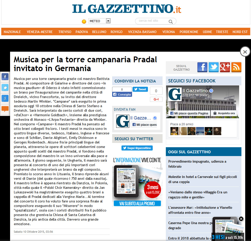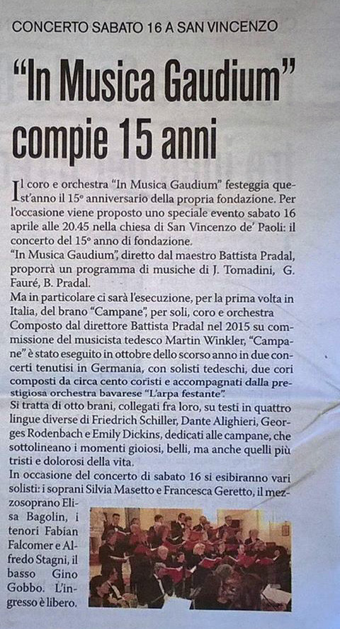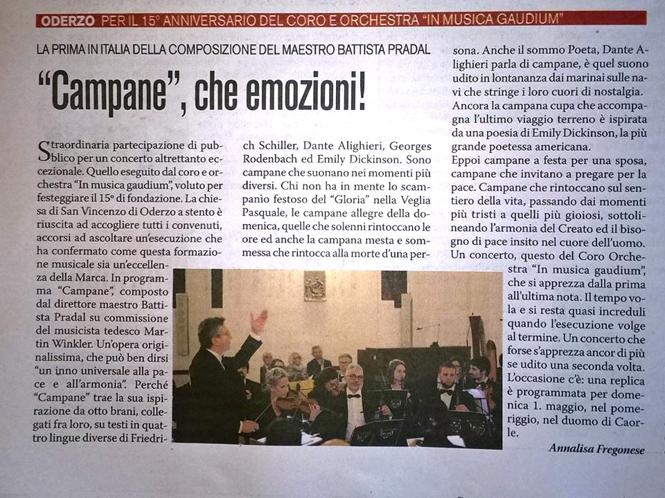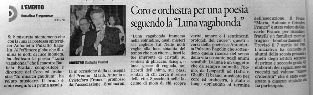 La prima esecuzione di Luna Vagabonda di Battista Pradal con testo di Antonietta Pulzatto Bagolin